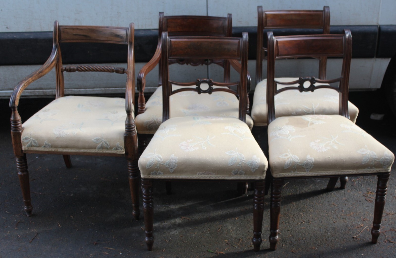 Set of 5 Mahogany Bar Back Dining Chairs with Pop Out Seats 4+1 Carver c.1910