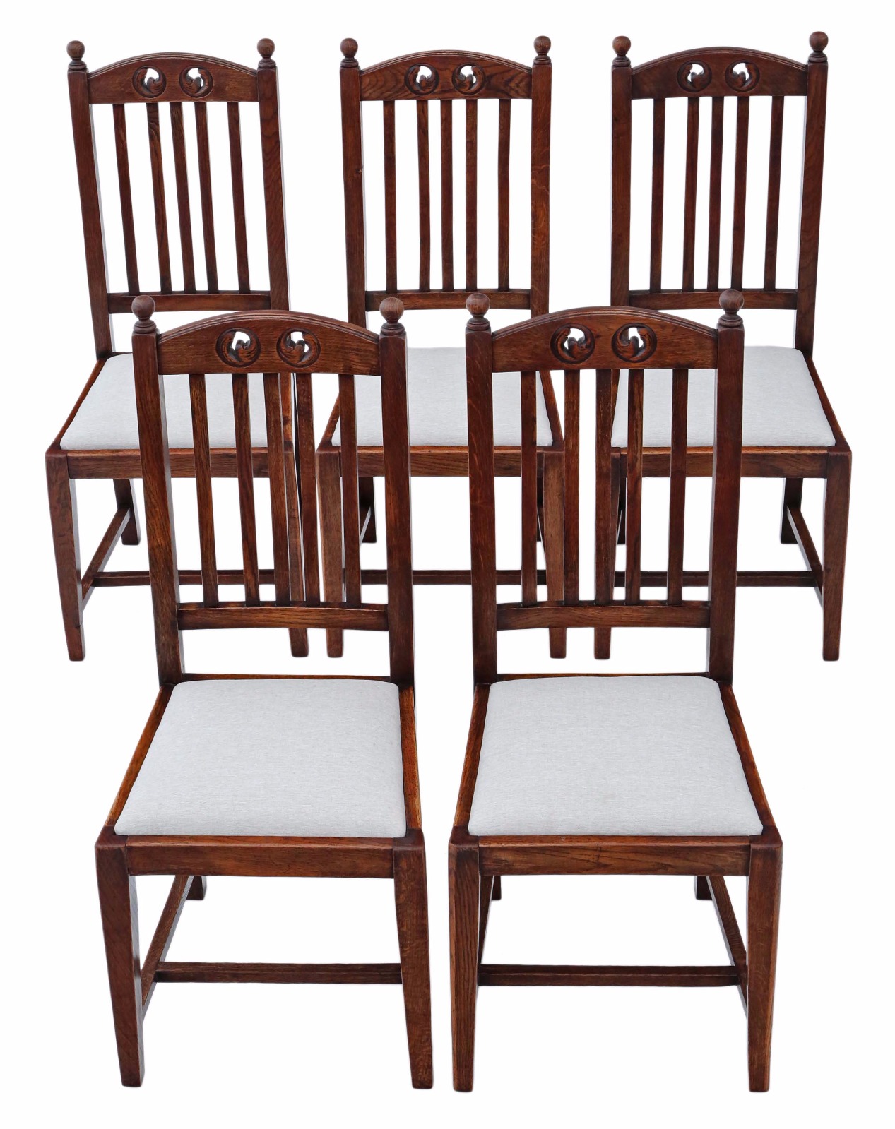 Set of 5 Oak High Back Art Nouveau Dining Chairs C.1910