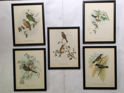 Set of 5 'Two Bird' From Mr Goulds Tropical Framed Bird Plates (1 of 1)