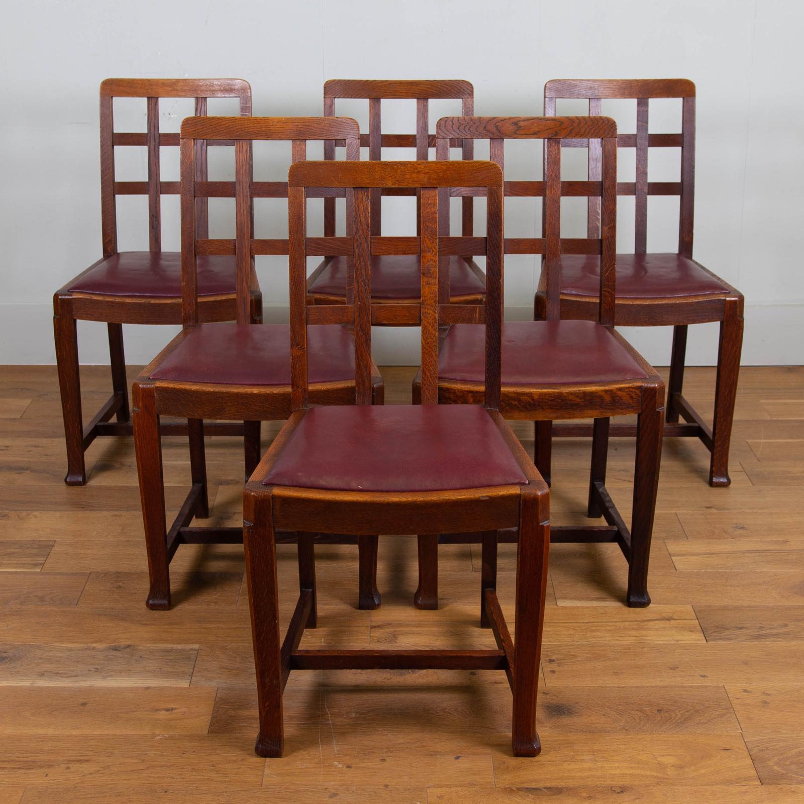 Set of 6 1930s Heals Lattice Back Oak Dining Chairs