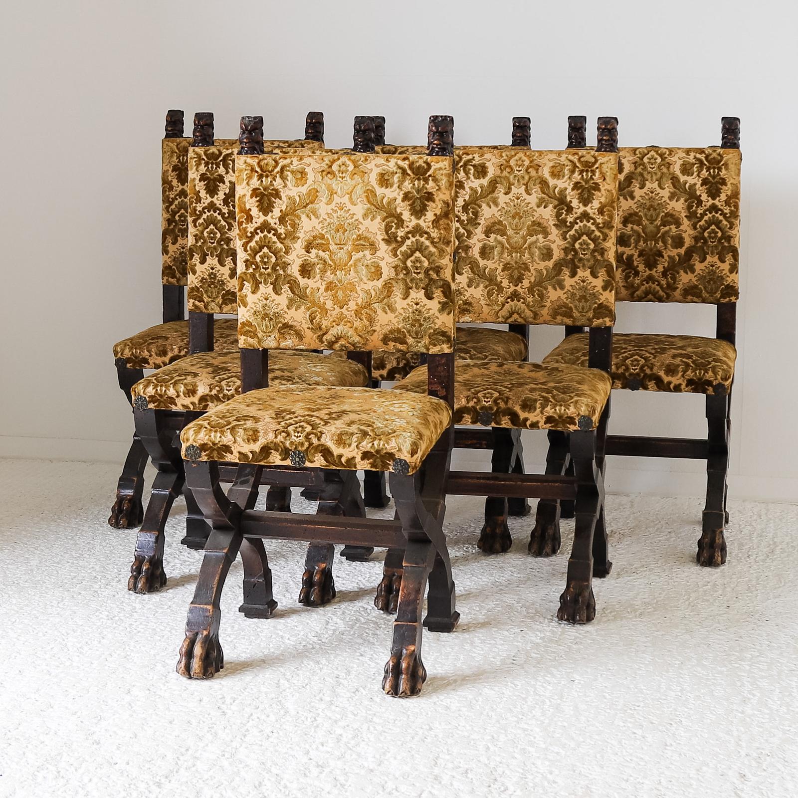 Set of 6 19th Century Tuscan Side Chairs X Frame & Carved Beast Feet (1 of 13)