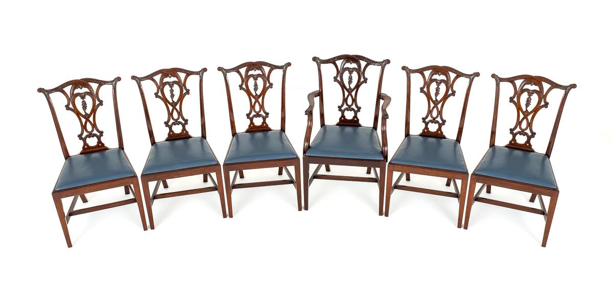 Set of 6 (5 + 1) Mahogany Chippendale Style Dining Chairs