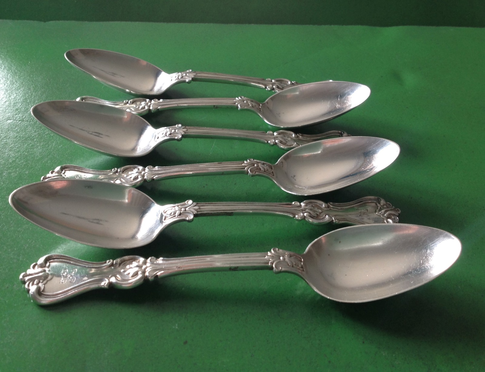 Set of 6 Antique Acanthus Silver Dessert Spoons - 1845