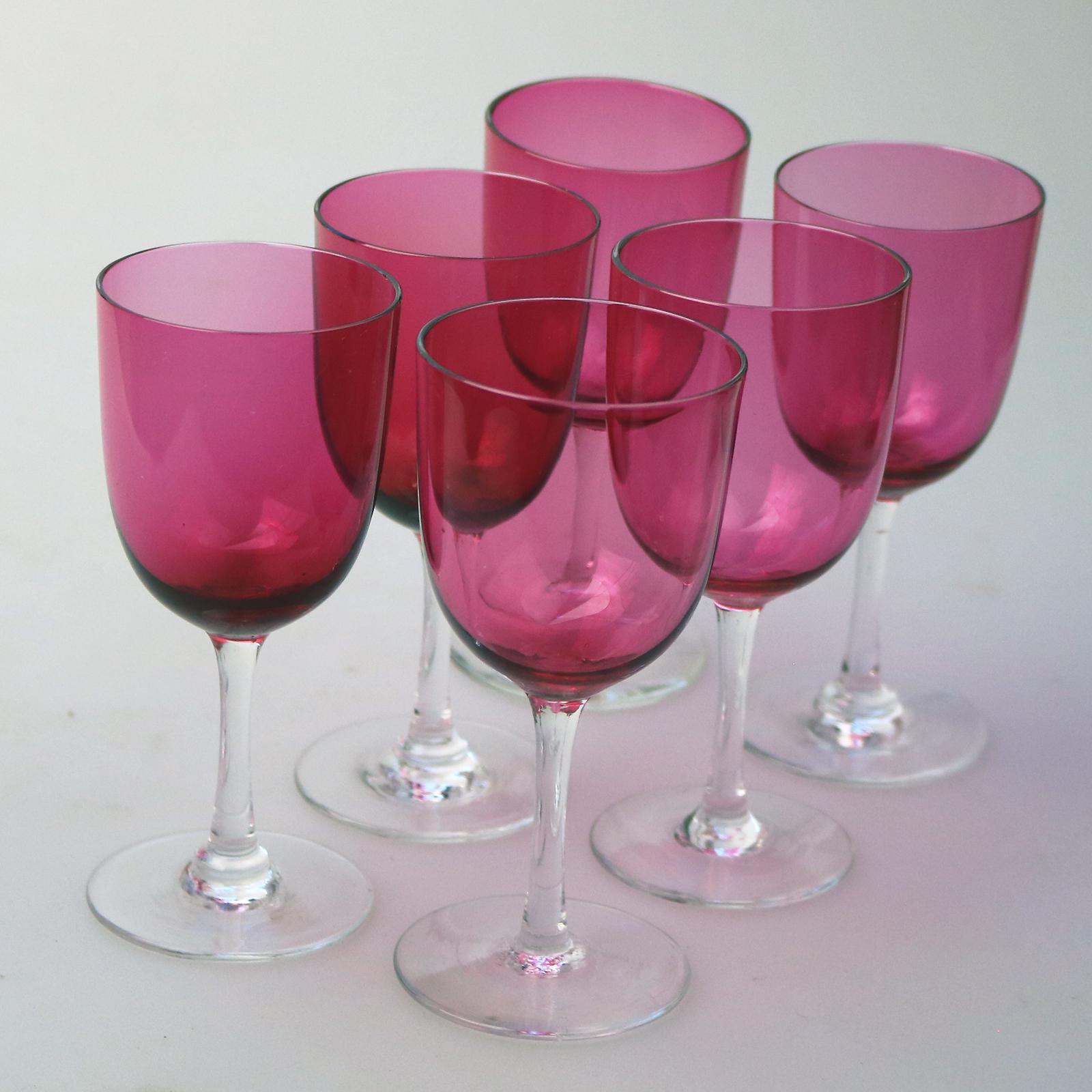 Set of 6 Antique Cranberry Glass Wine Glasses c.1900