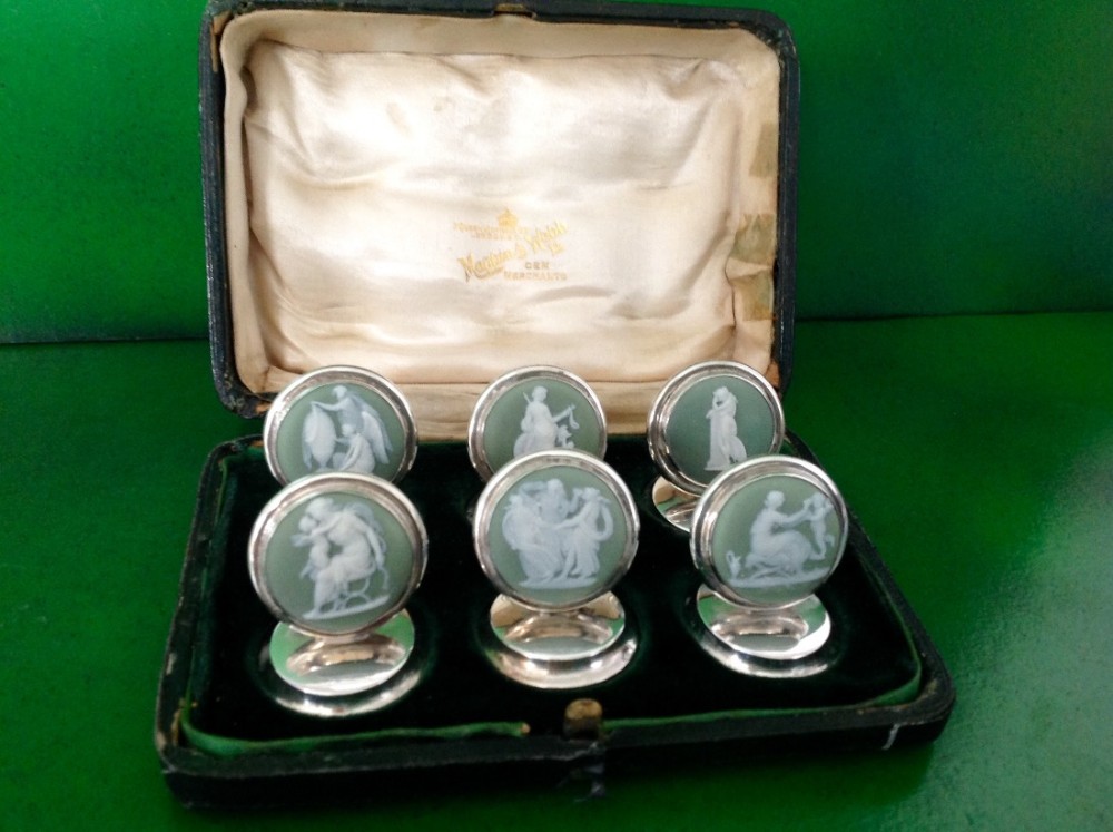 Set of 6 Antique Edwardian Wedgwood Silver Menu Holders - 1907