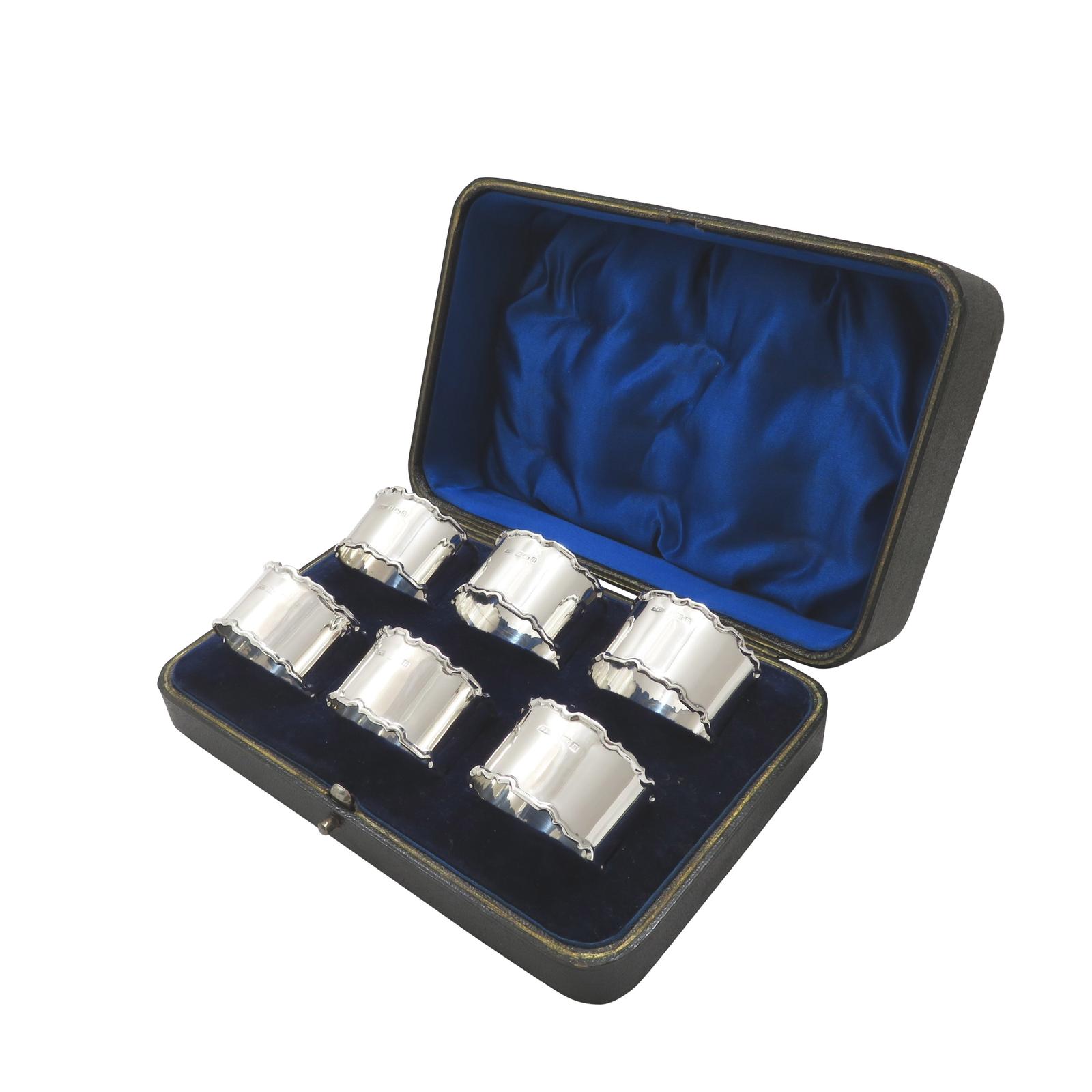 Set of 6 Antique George V Sterling Silver Napkin Rings in Case 1912