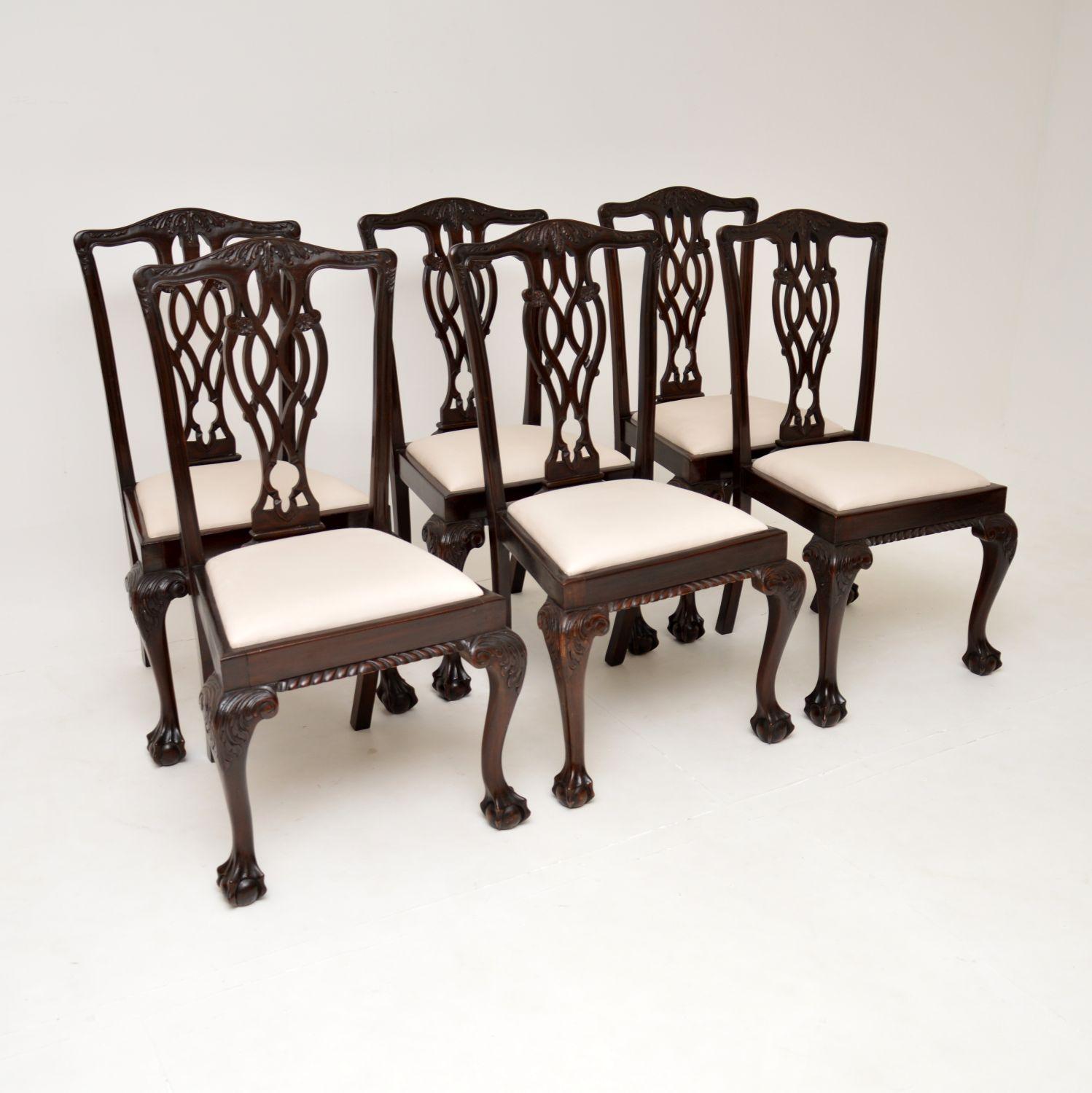 Set of 6 Antique Mahogany Chippendale Style Dining Chairs