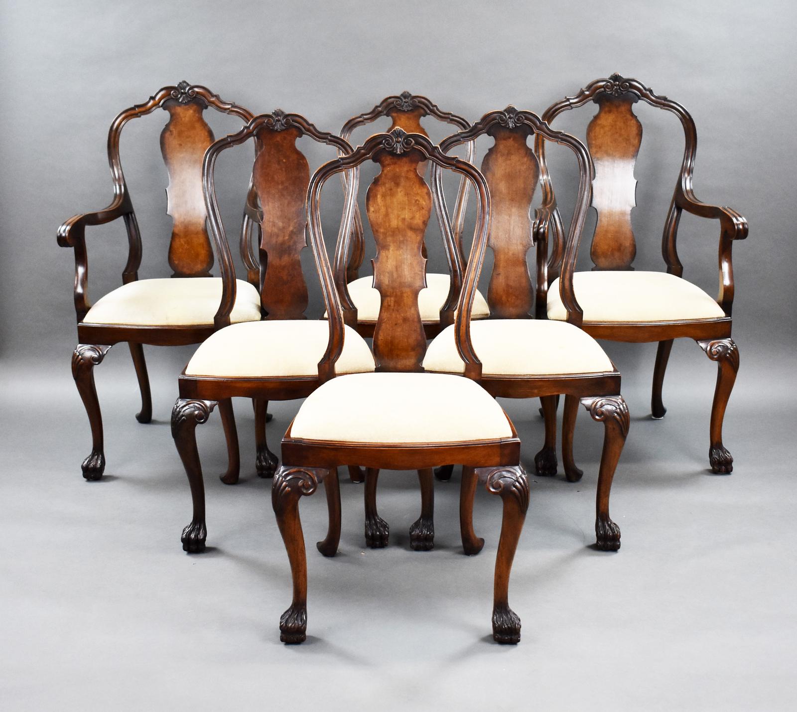Set of 6 Antique Queen Anne Style Walnut Dining Chairs