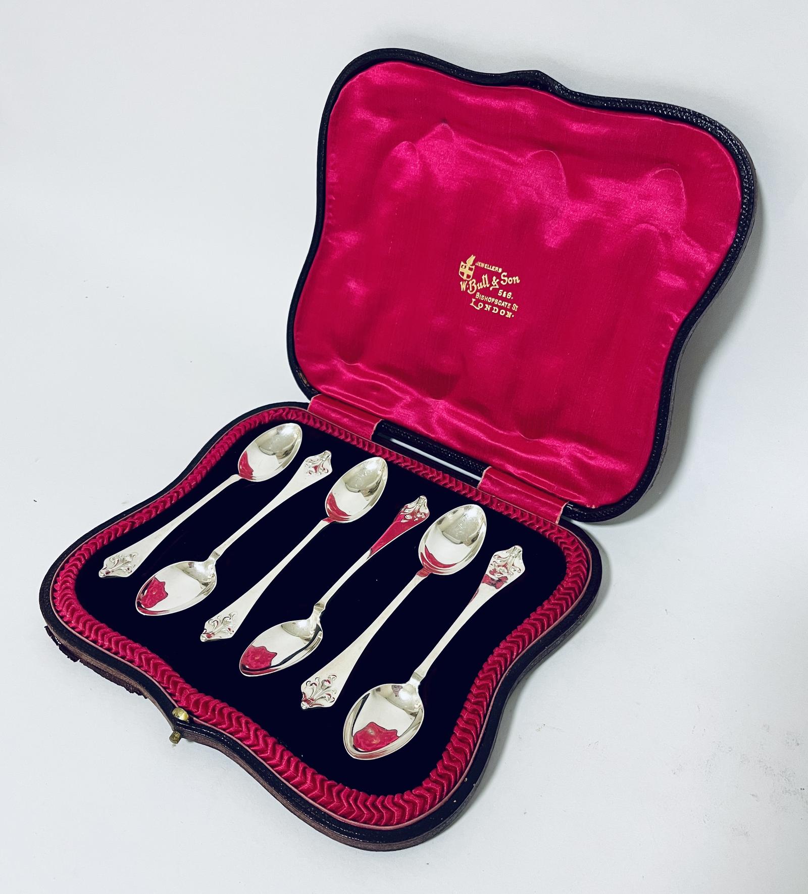 Set of 6 Antique Silver Teaspoons in Box (1 of 15)