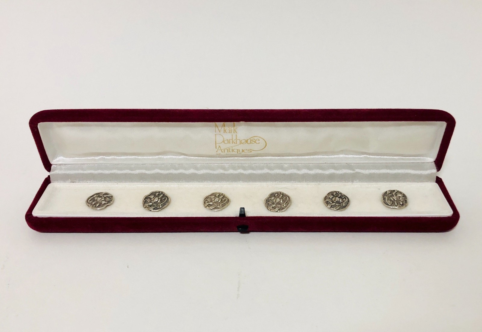 Set of 6 Antique Solid Silver Art Nouveau Buttons