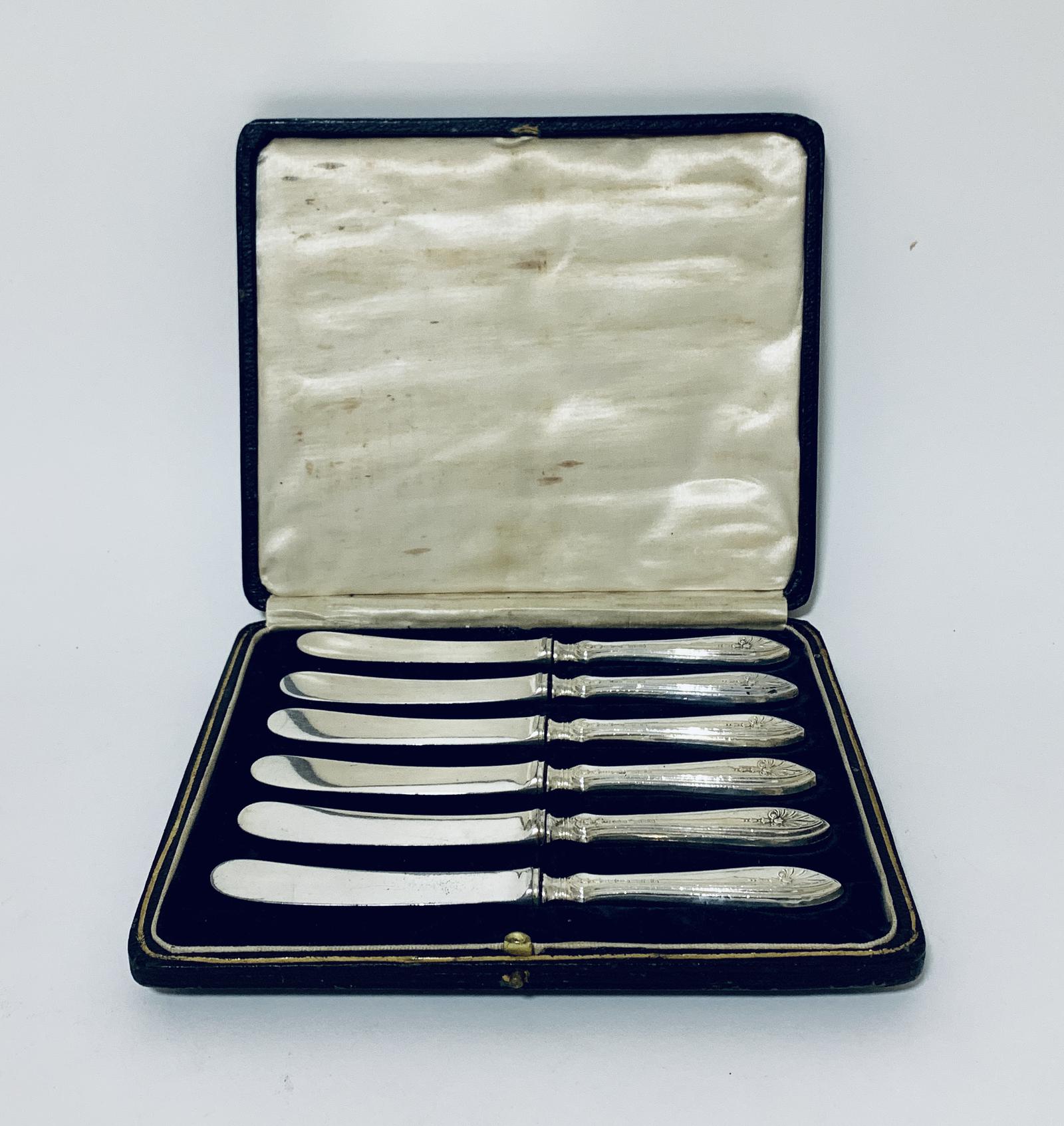 Set of 6 Antique Sterling Silver Butter Knives in Original Box (1 of 16)