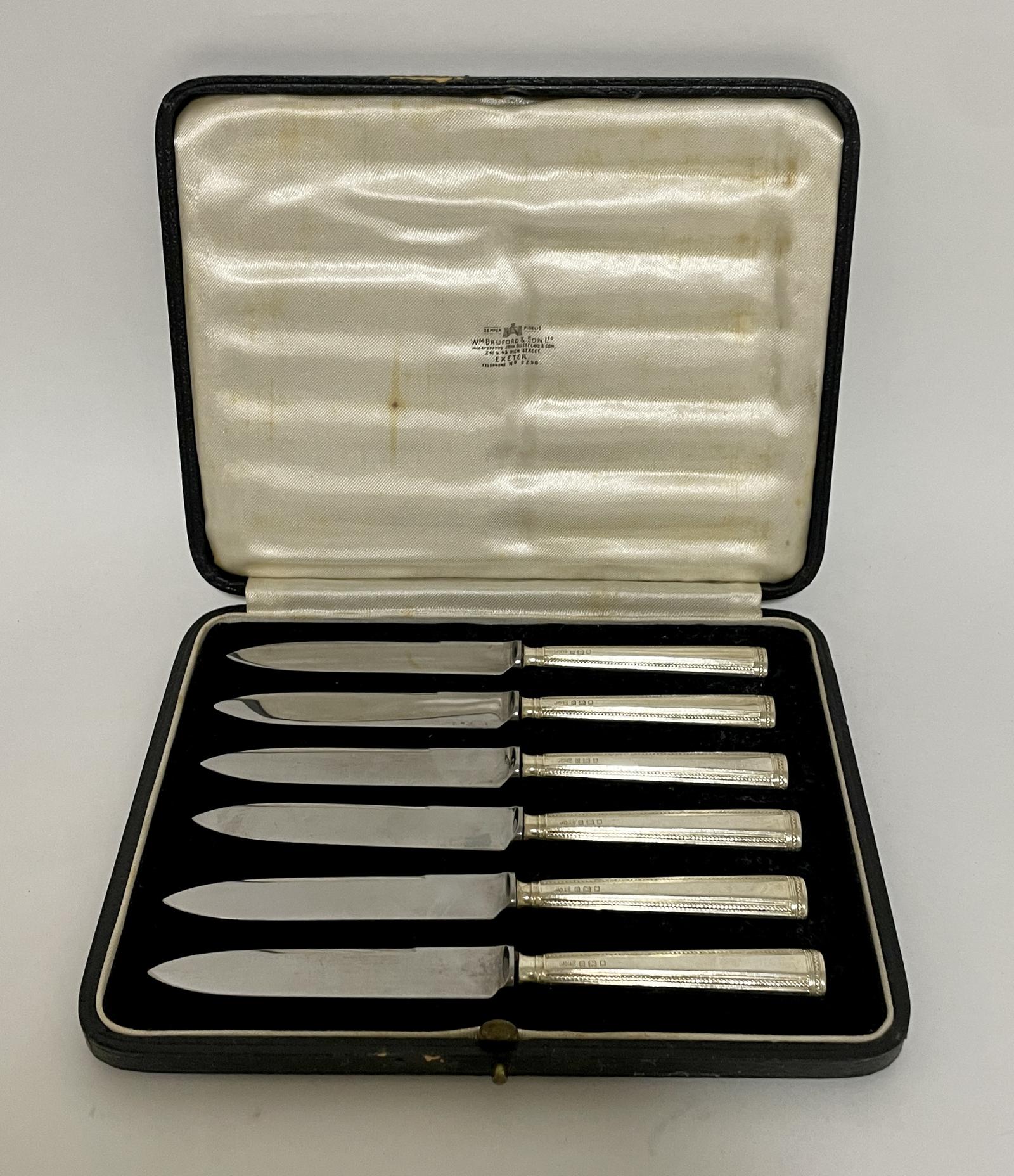 Set of 6 Antique Sterling Silver Fruit Knives in Box (1 of 17)