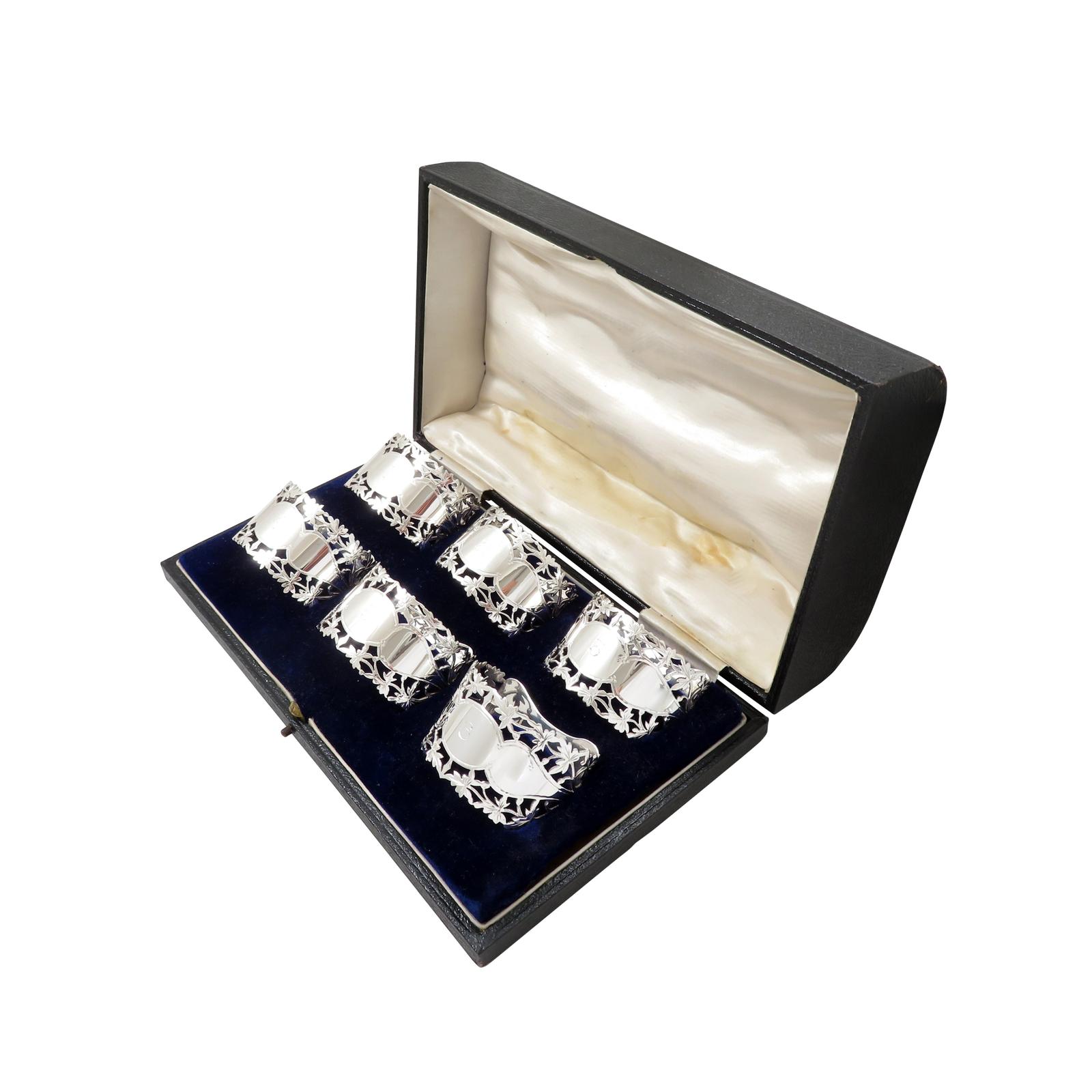 Set of 6 Antique Sterling Silver Napkin Rings in Case