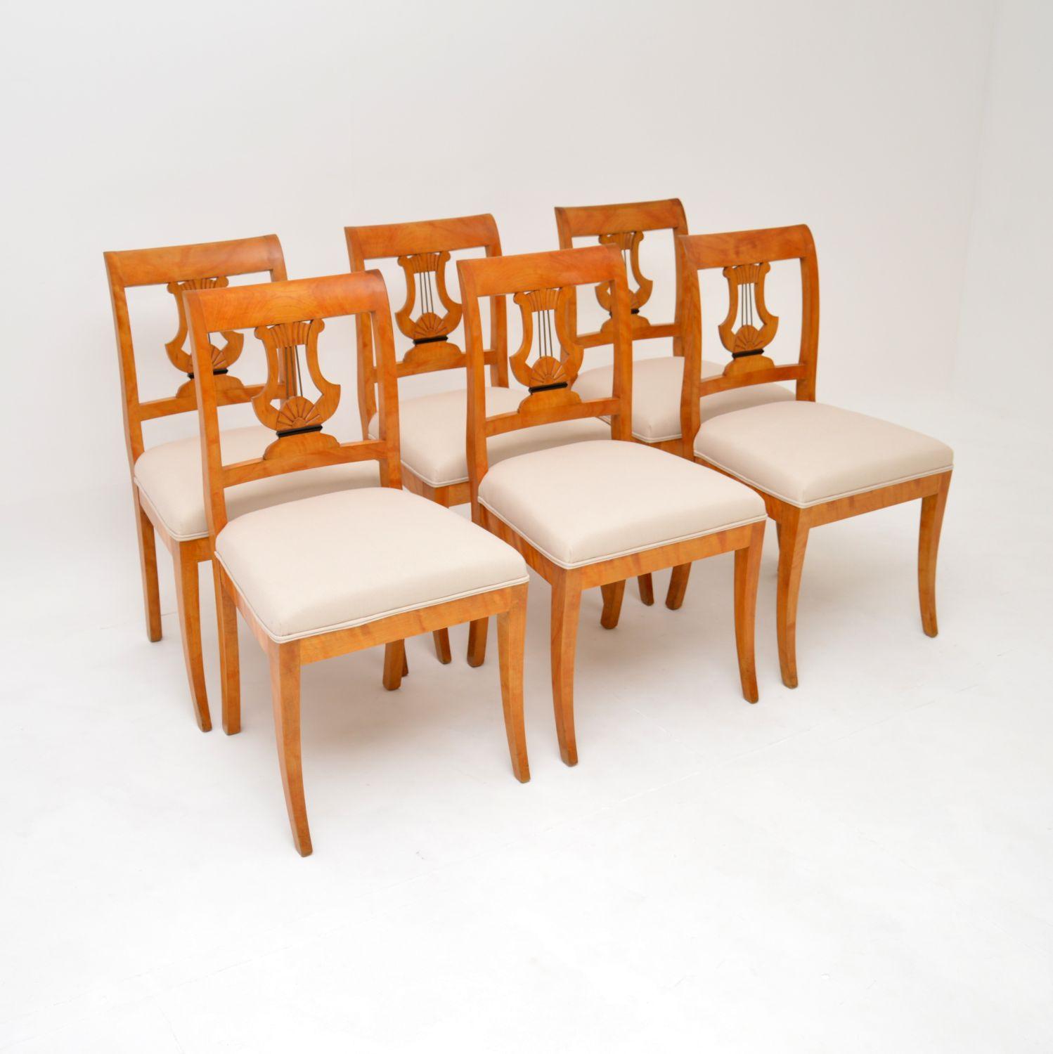 Set of 6 Antique Swedish Biedermeier Satin Birch Dining Chairs