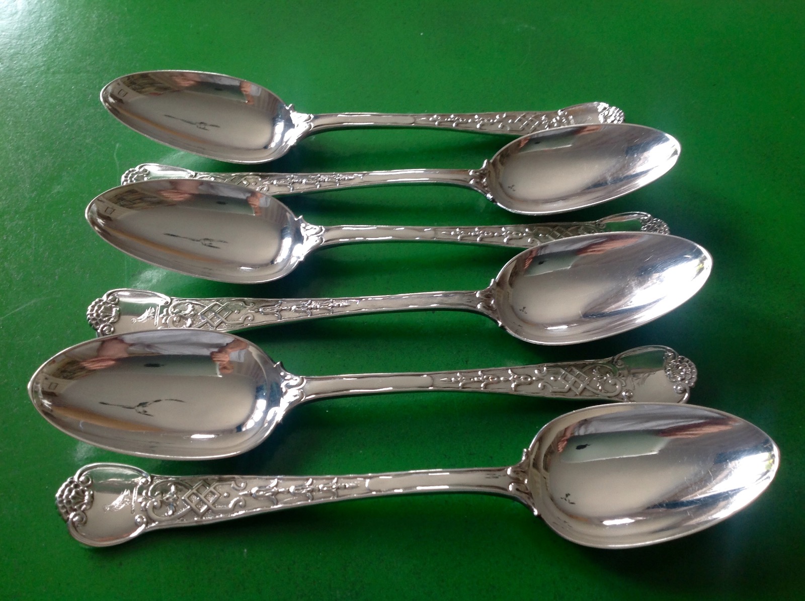 Set of 6 Antique Victorian Silver Elizabethan Serving Spoons - 1858