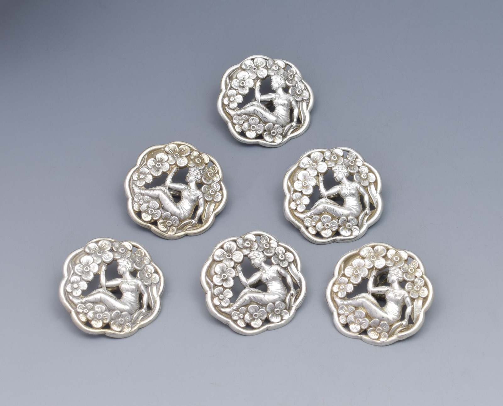 Set of 6 Art Nouveau Silver Buttons Levi & Salaman