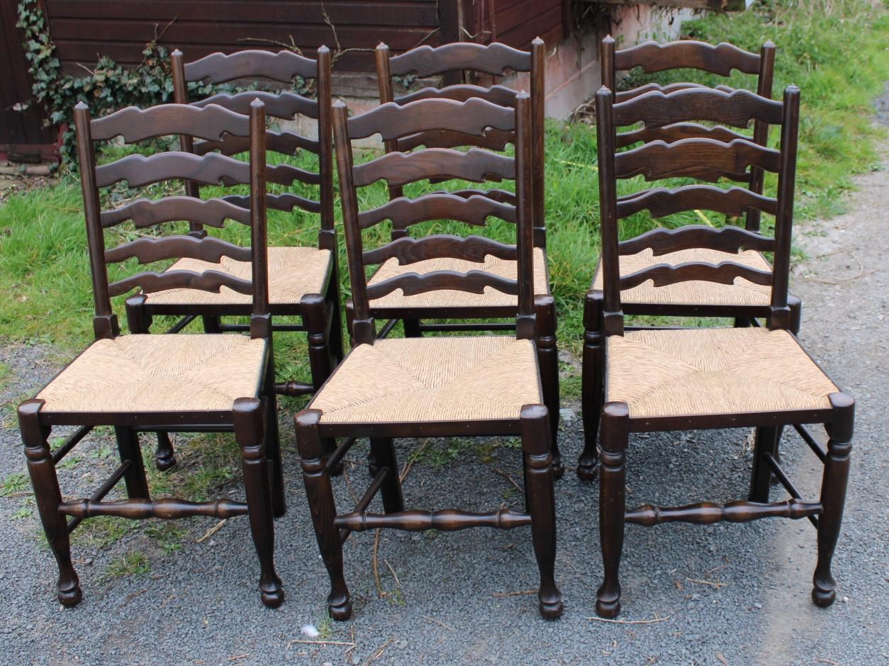 Set of 6 Ash Ladderback Chairs with Rush Seats