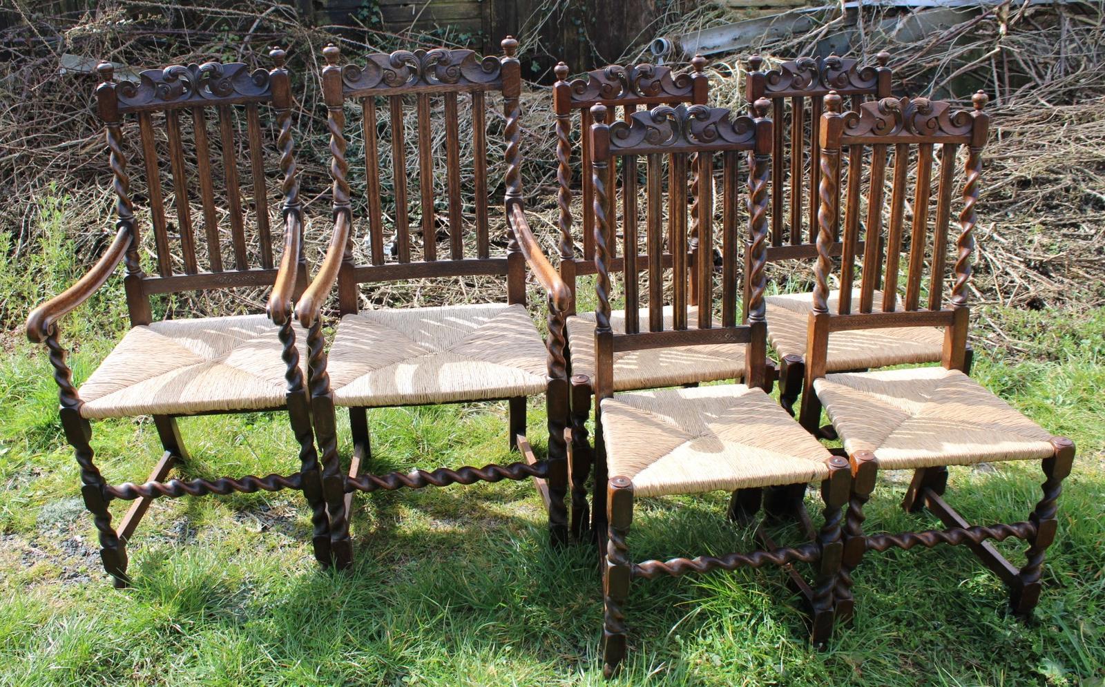 Set of 6 Barley Twist Oak Dining Chairs Rush Seats