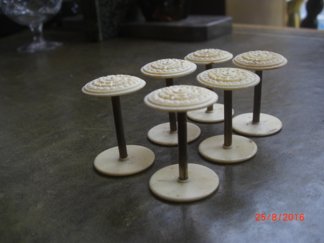 Set of 6 Carved Bone Cotton Reels / Spools c.1850