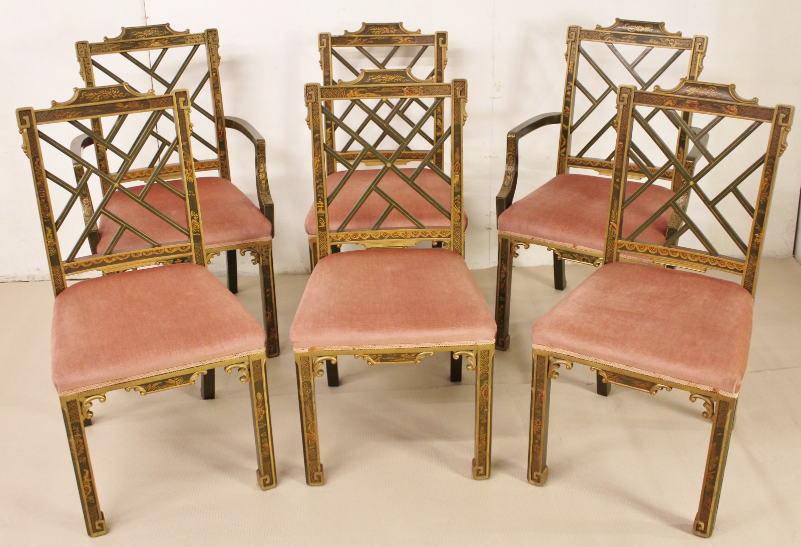 Set of 6 Chippendale Style Chinoiserie Painted Chairs c.1930 (1 of 1)