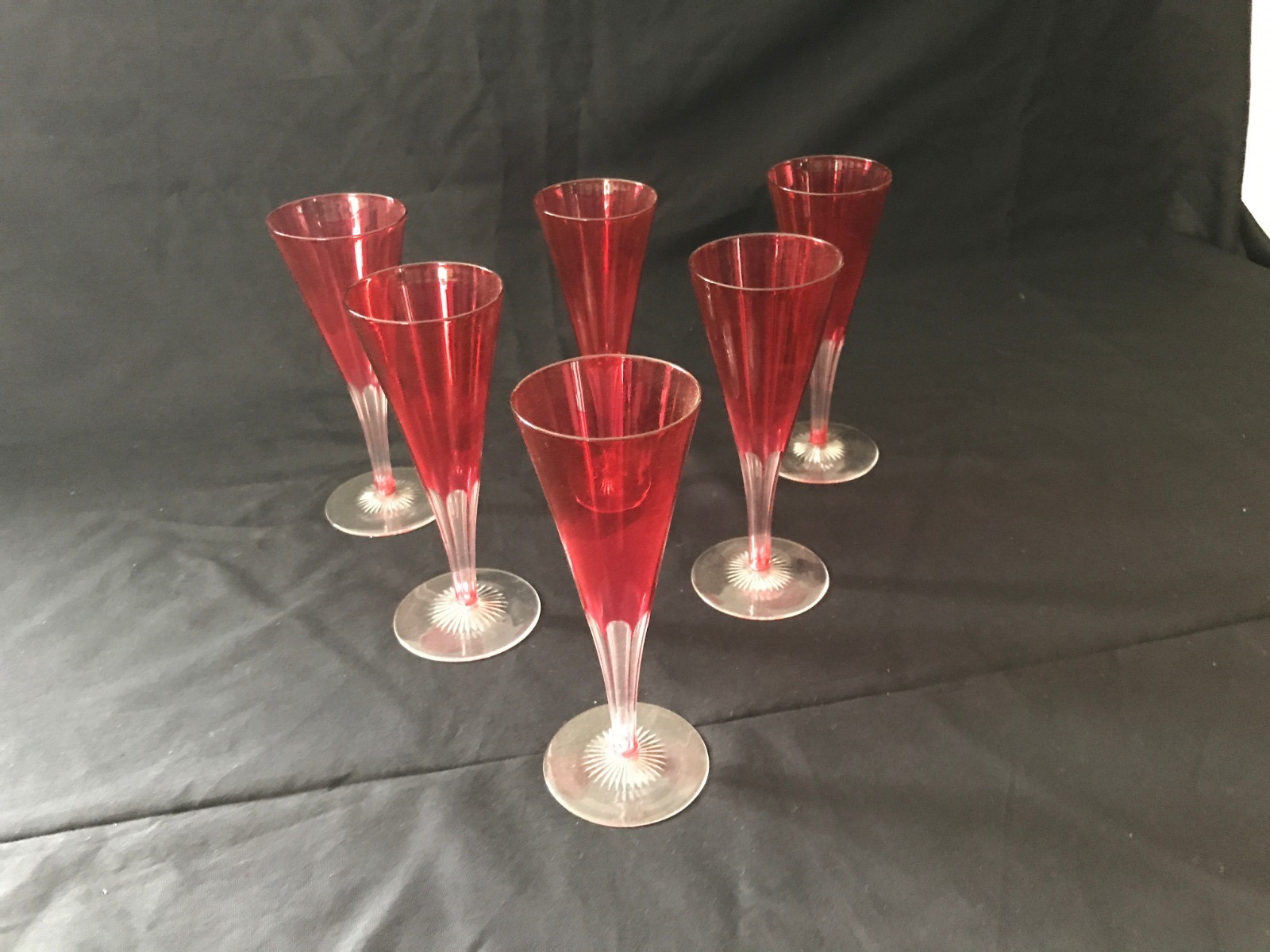 Set of 6 Cranberry Champagne Flutes c.1900