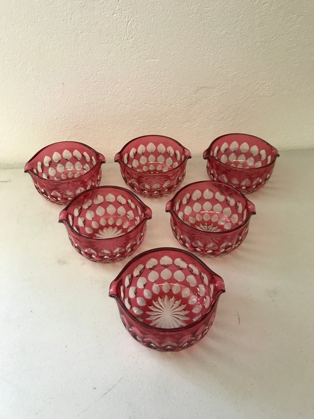 Set of 6 Cranberry Glass Wine Rinsers