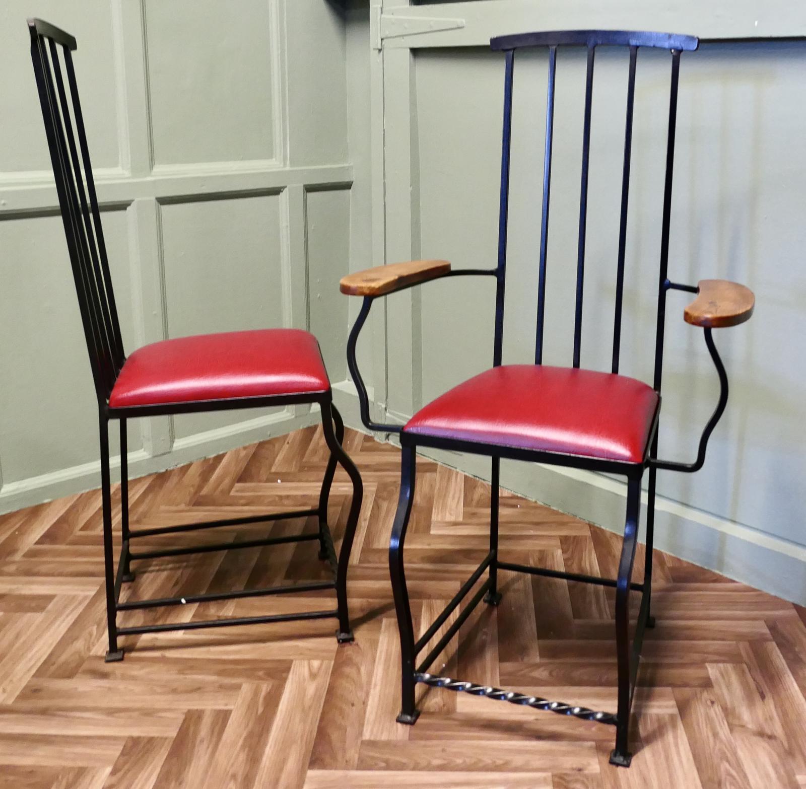 Set of 6 Designer High Back Strap-work Iron Dining Chairs