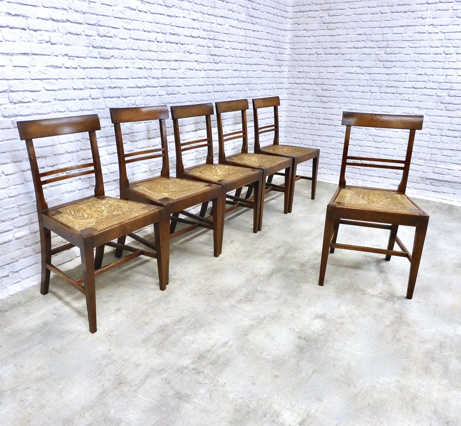Set of 6 Early 19th Century Rush Seated Dining Chairs