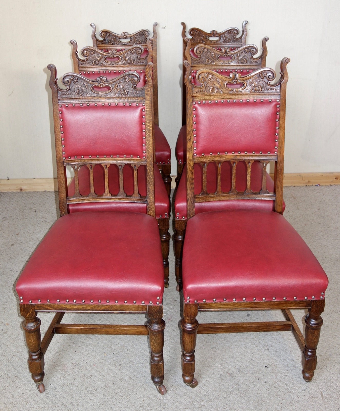 Set of 6 Edwardian Oak Leather Dining Chairs c.1910 (1 of 1)