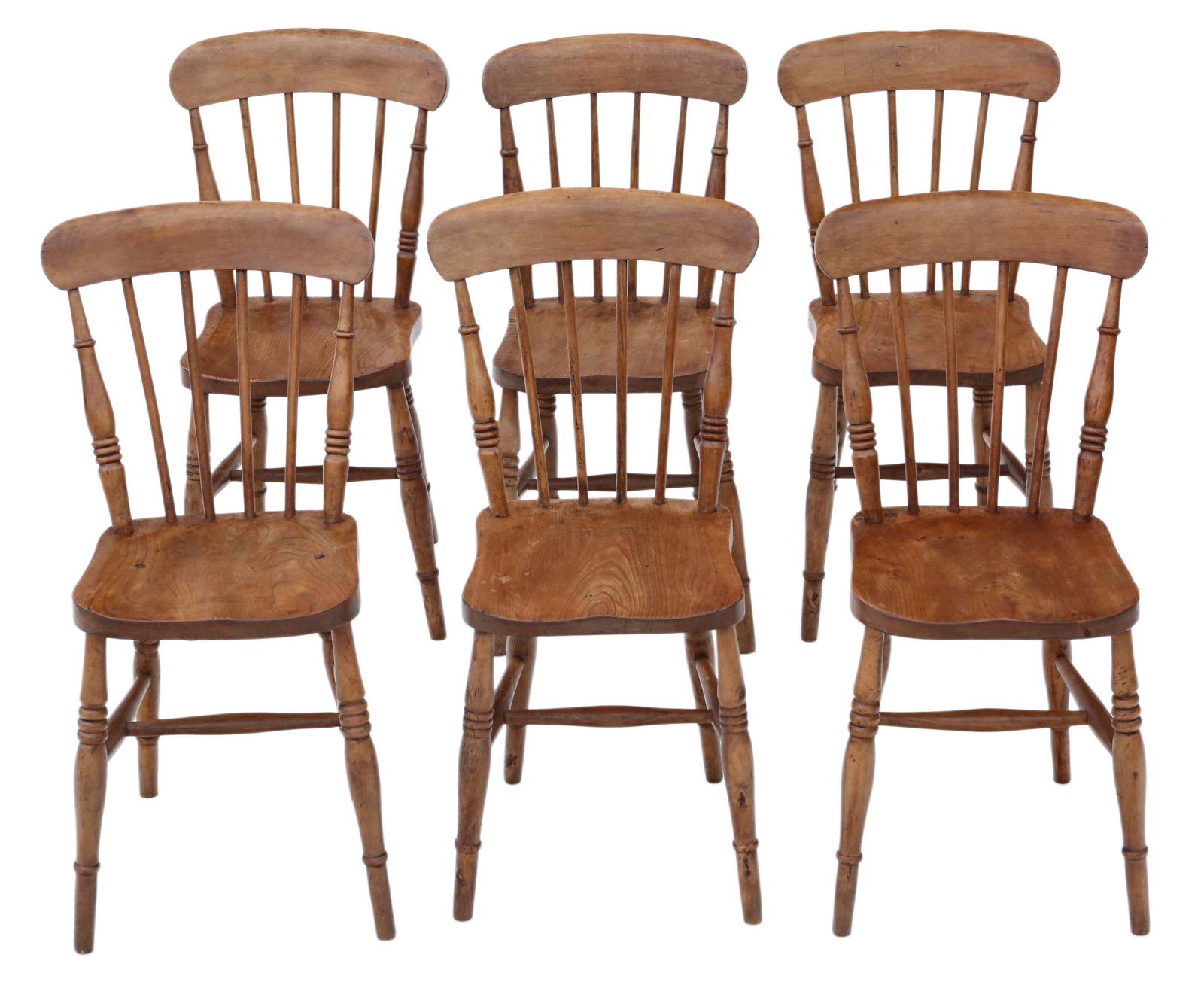 Set of 6 Elm & Beech Kitchen Dining Chairs c.1900 (1 of 8)