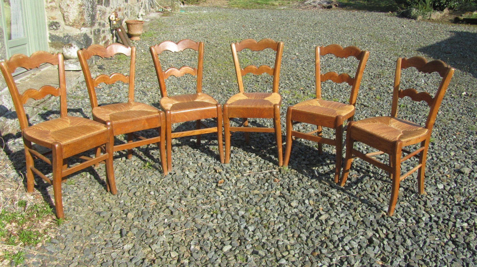 Set of 6 French Elm and Rush Kitchen Chairs C.1920