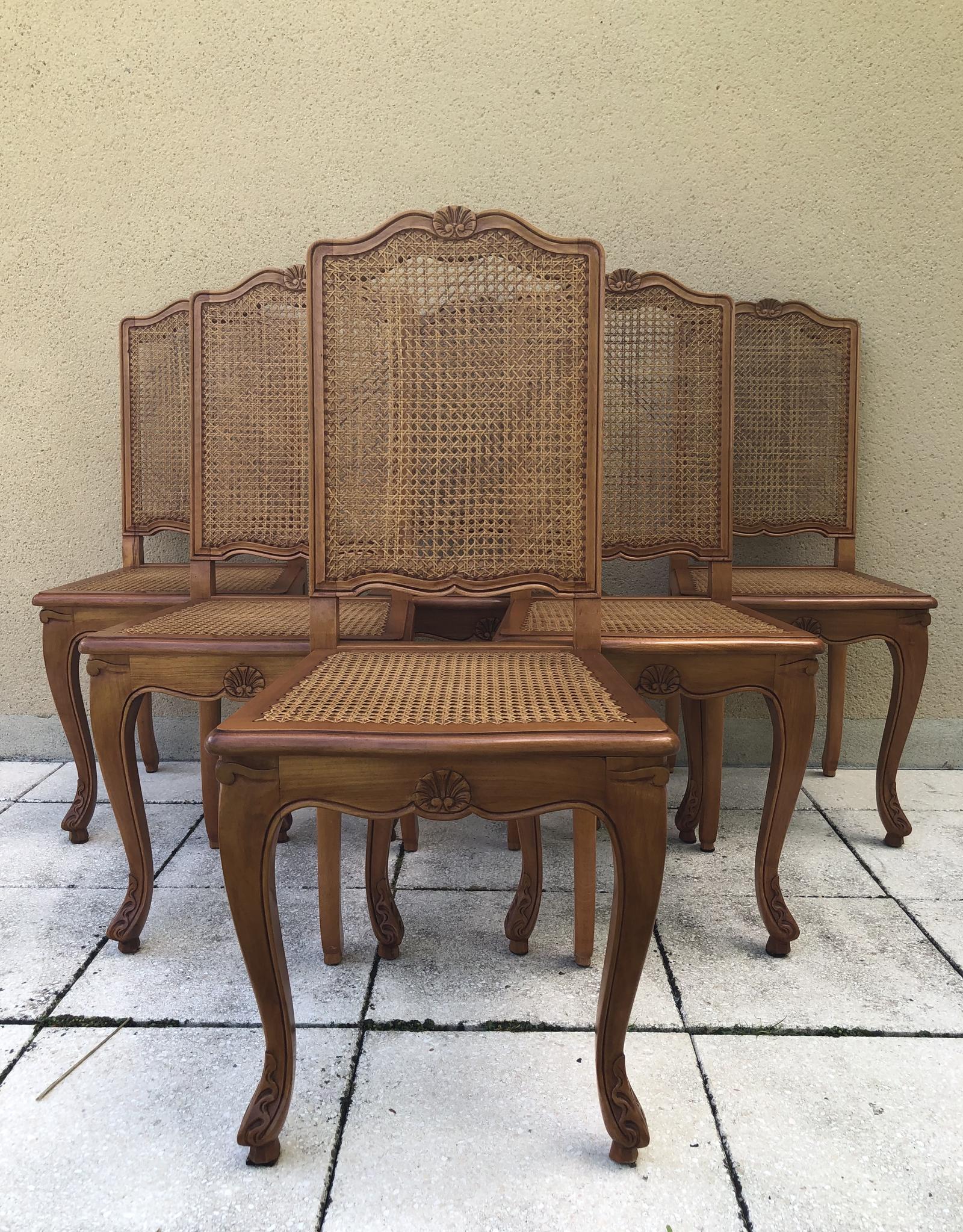 Set of 6 French Louis Style Cane Dining Chairs