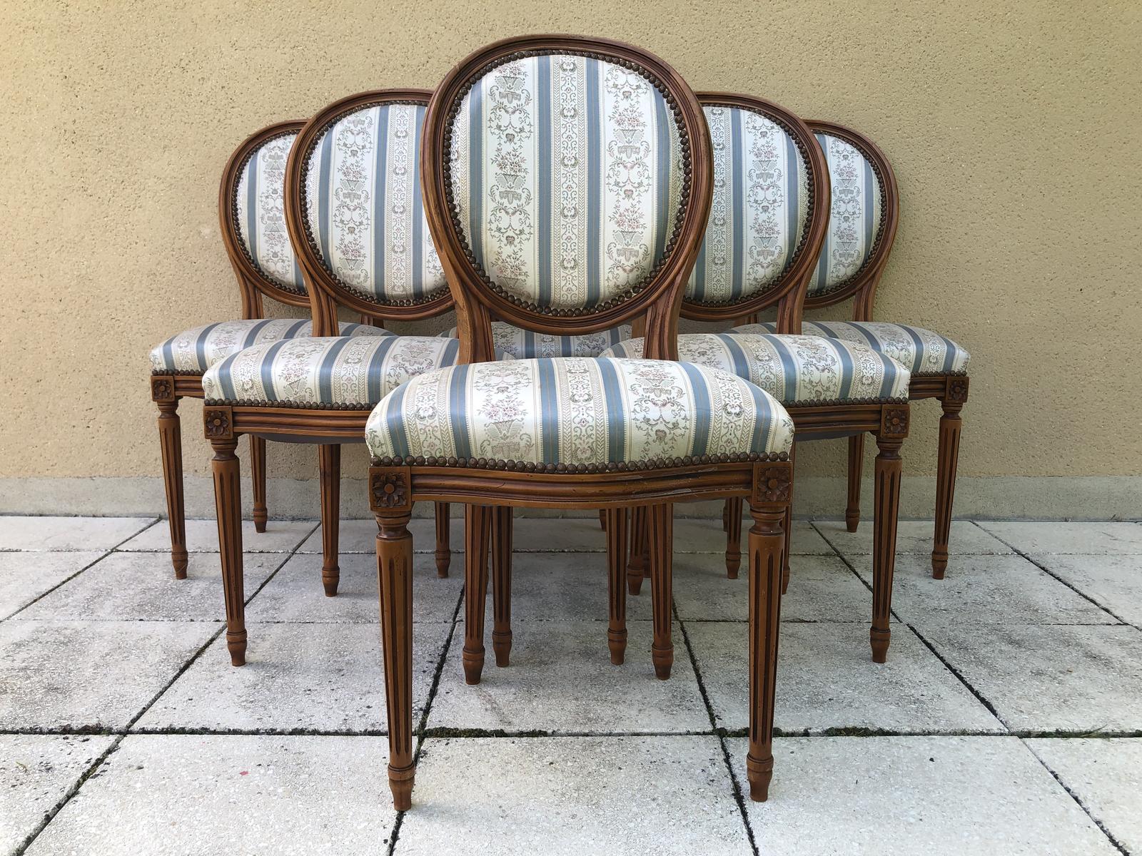 Set of 6 French Upholstered Louis XVI Style Dining Chairs