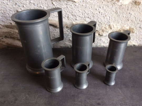 Set of 6 French Vintage Graduated Pewter Measuring Jugs Maker Jr Vgc Free Worldwide Shipping