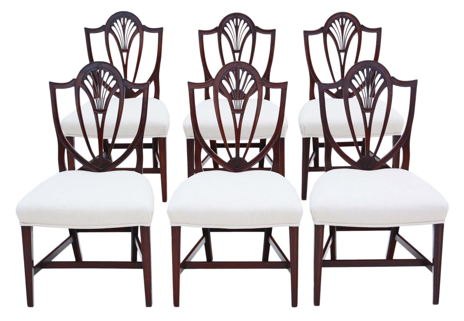 Set of 6 Georgian Mahogany Shield Back Dining Chairs c.1820