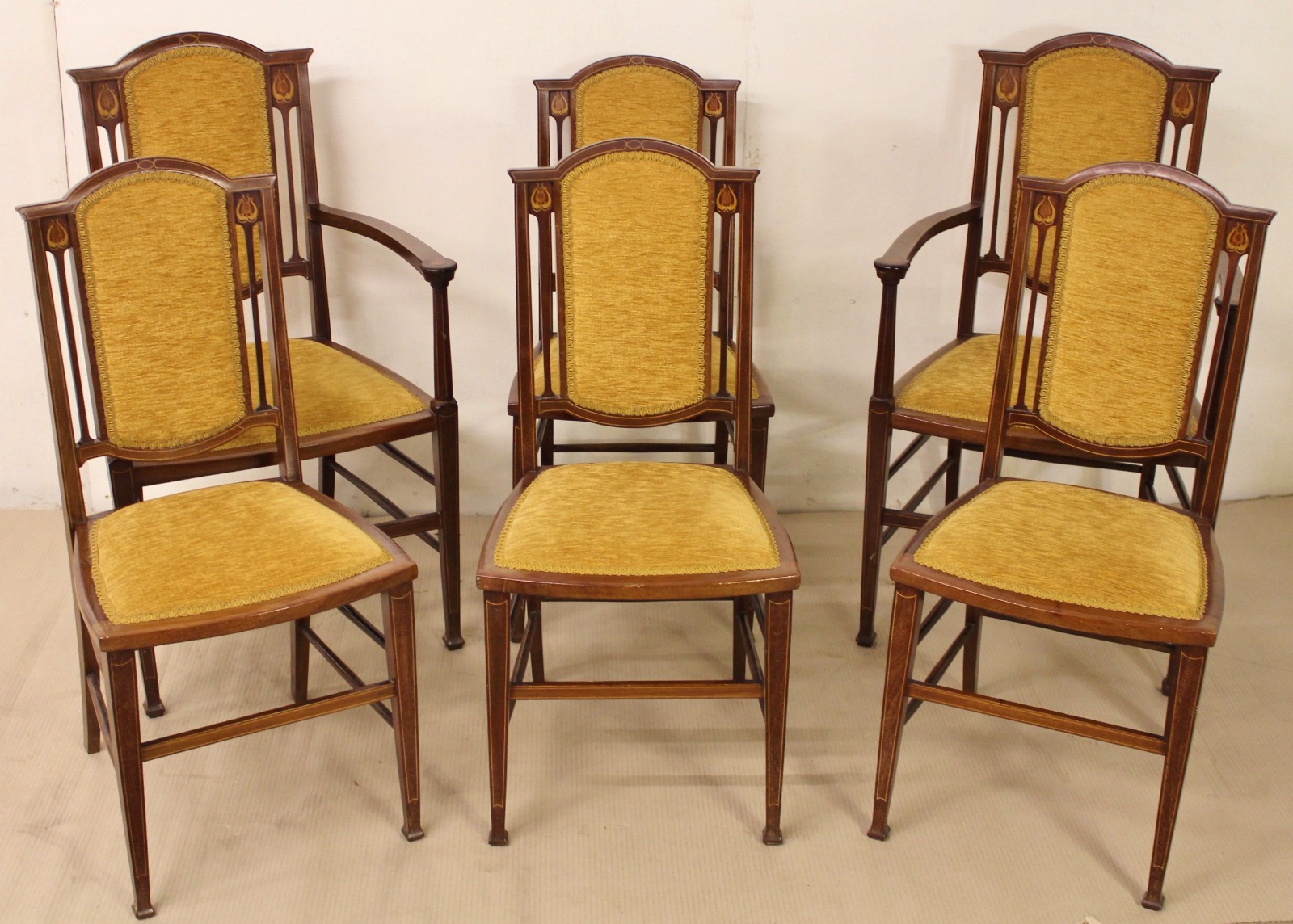 Set of 6 Inlaid Mahogany Art Nouveau Period Armchairs (1 of 1)