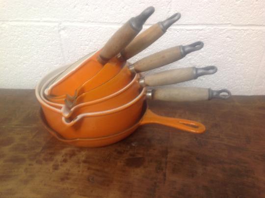 Set of 6 Le Creuset Volcanic Orange 1970s Pans Frying Pan Mil Pan