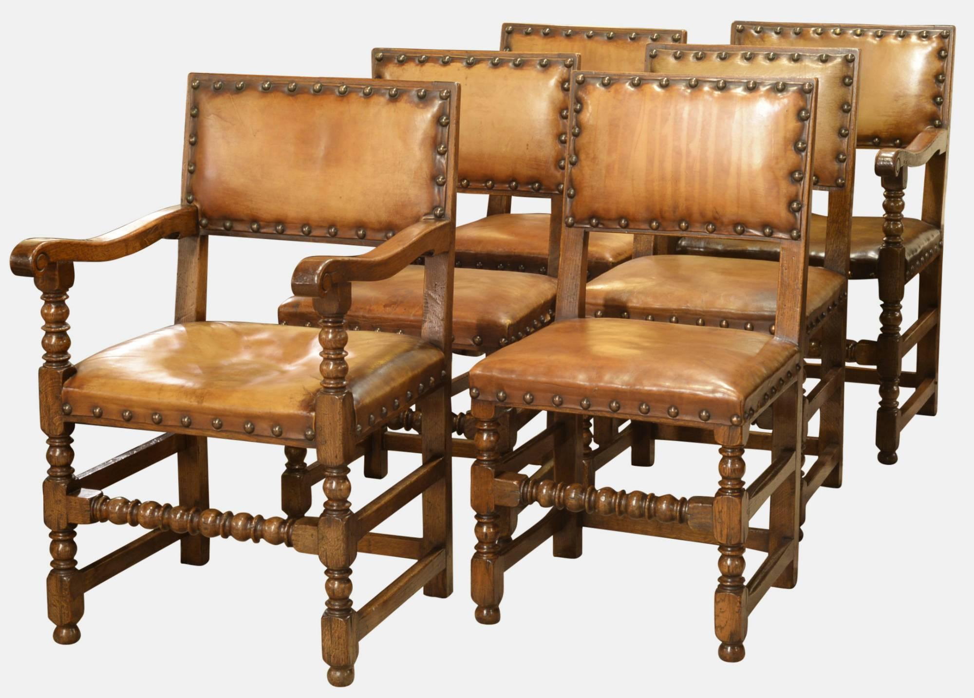 Set of 6 Leather & Oak Dining Chairs c.1900