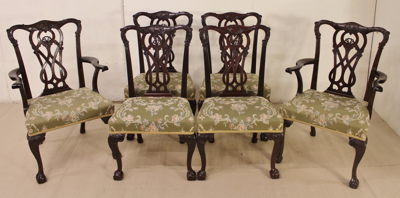 Set of 6 Mahogany Chippendale Style Dining Chairs