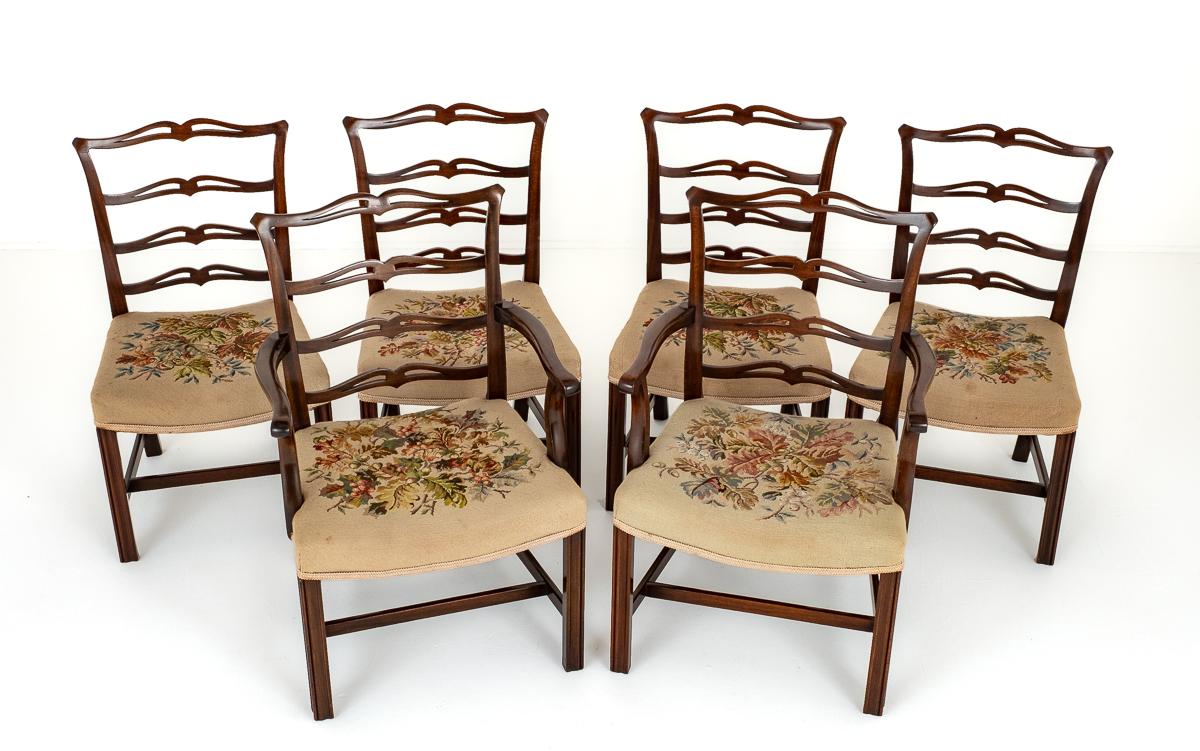 Set of 6 Mahogany Ladderback Chippendale Style Dining Chairs (1 of 14)