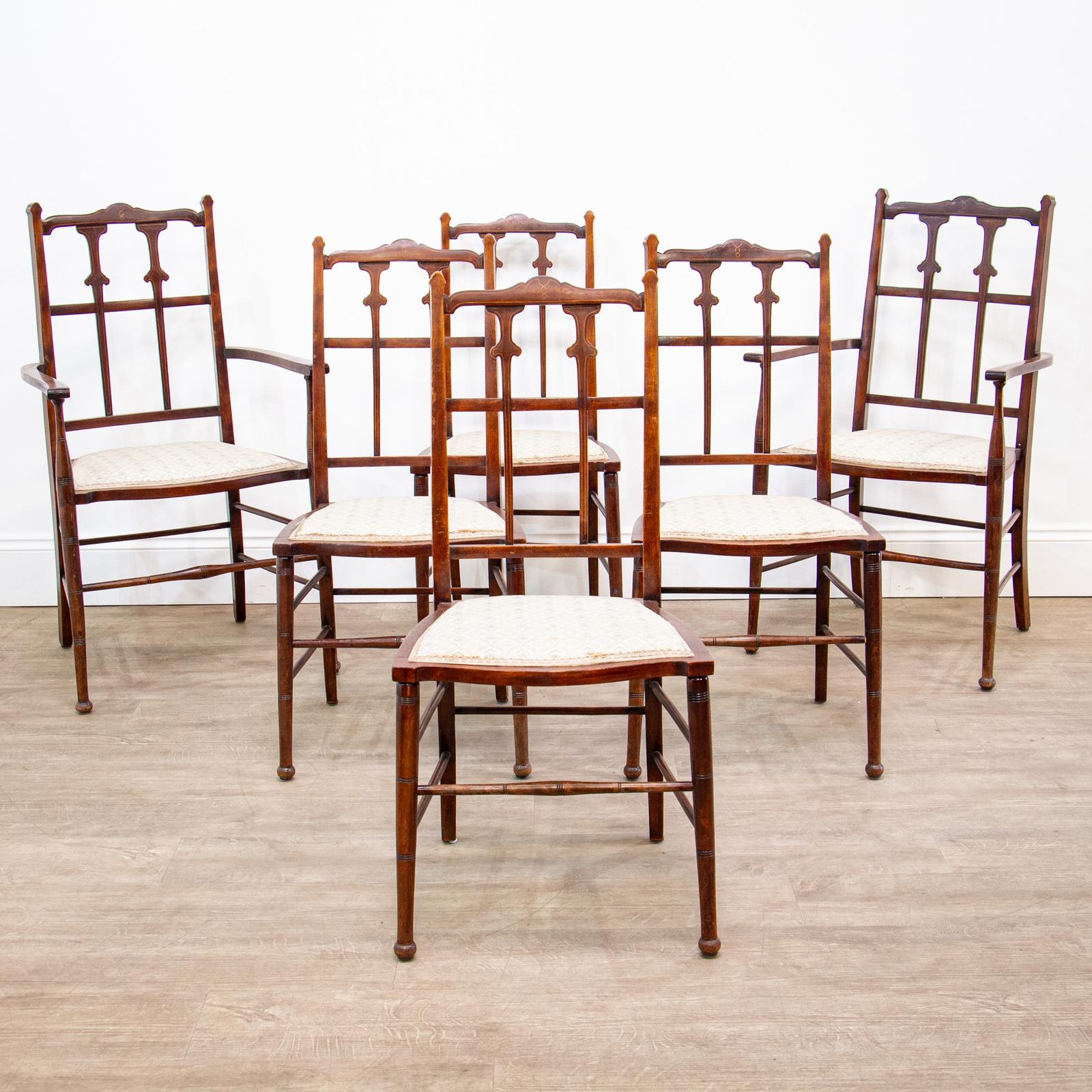 Set of 6 Mahogany with Inlay Arts & Crafts Chairs