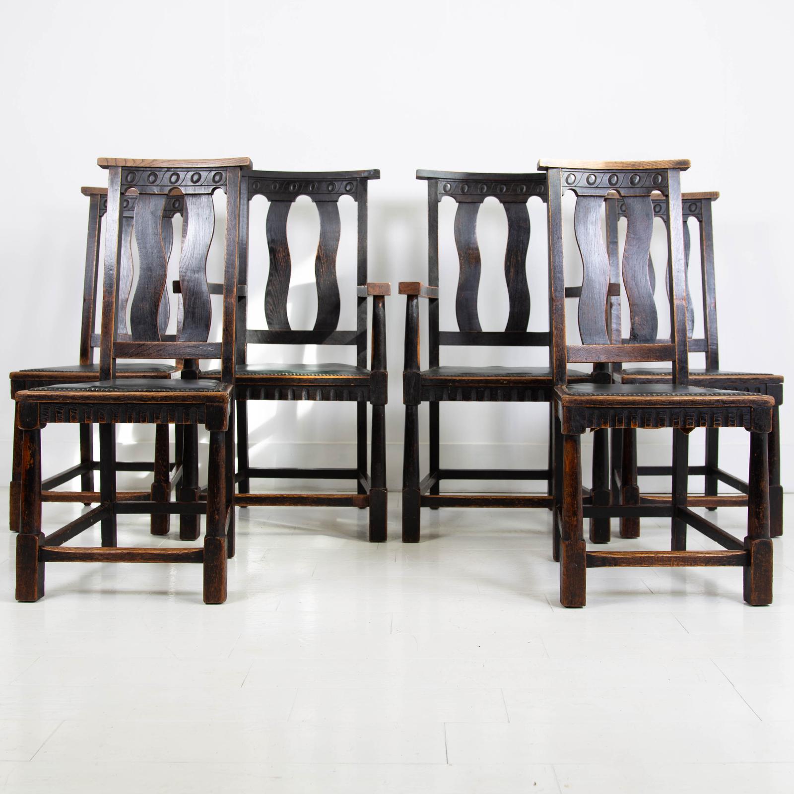 Set of 6 Oak Arts and Crafts Dining Chairs Early 1900 (1 of 20)