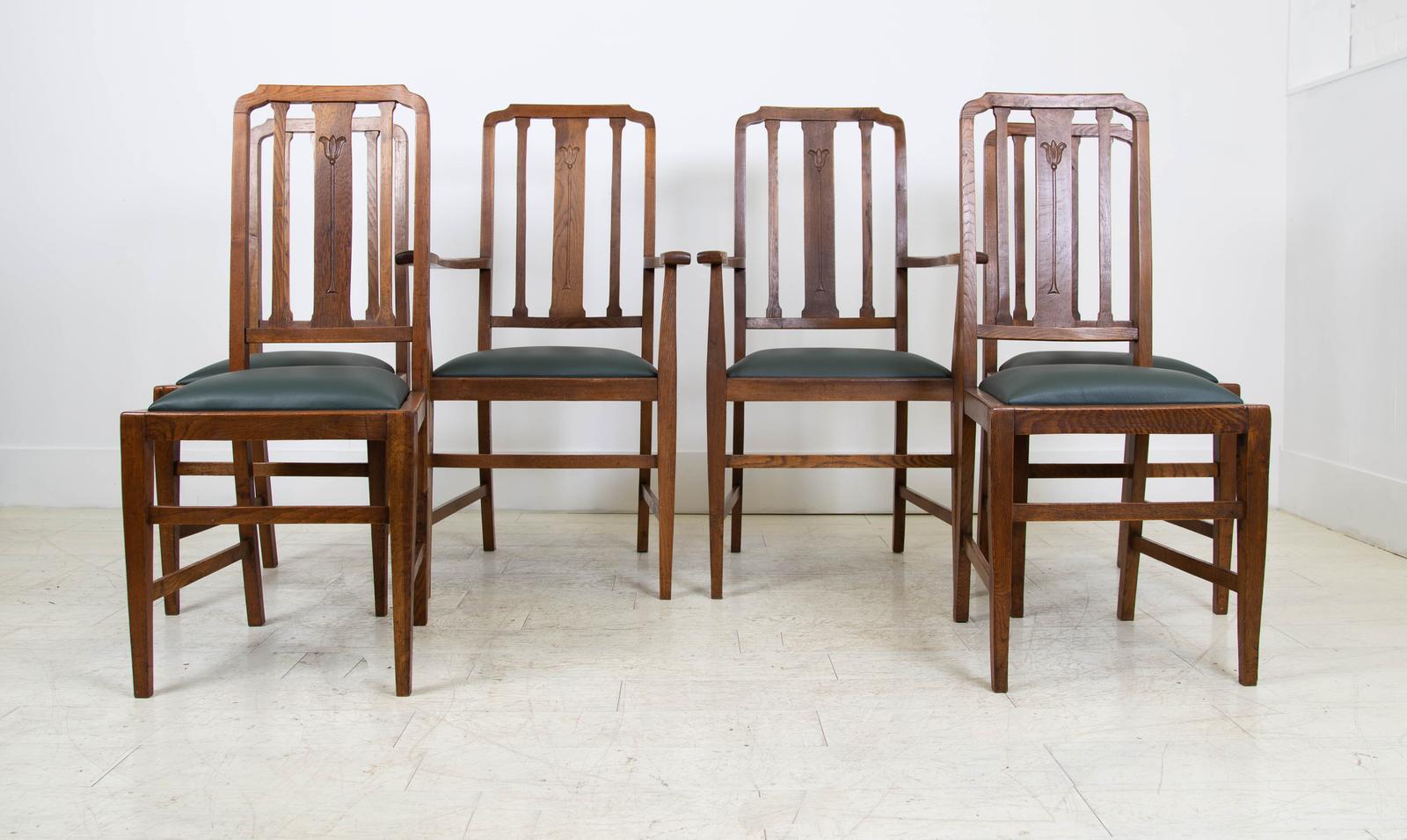 Set of 6 Oak Arts and Crafts Dining Chairs New Leather Seats c.1910