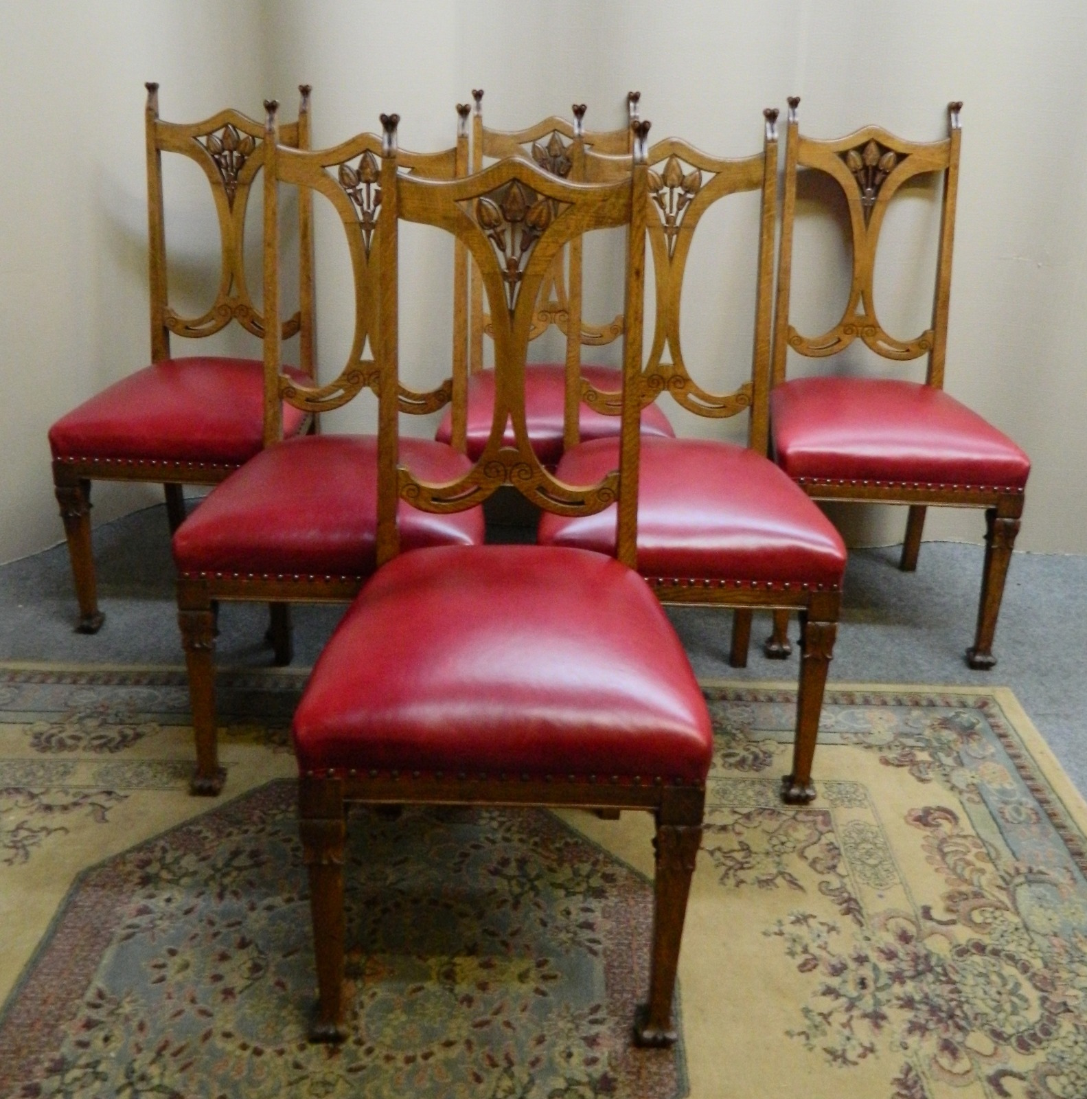 Set of 6 Oak Arts & Crafts Chairs c.1900