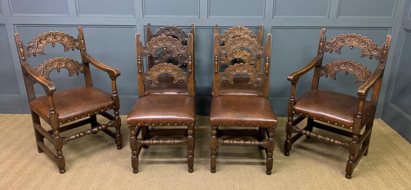 Set of 6 Oak Jacobean Style Dining Chairs (1 of 12)