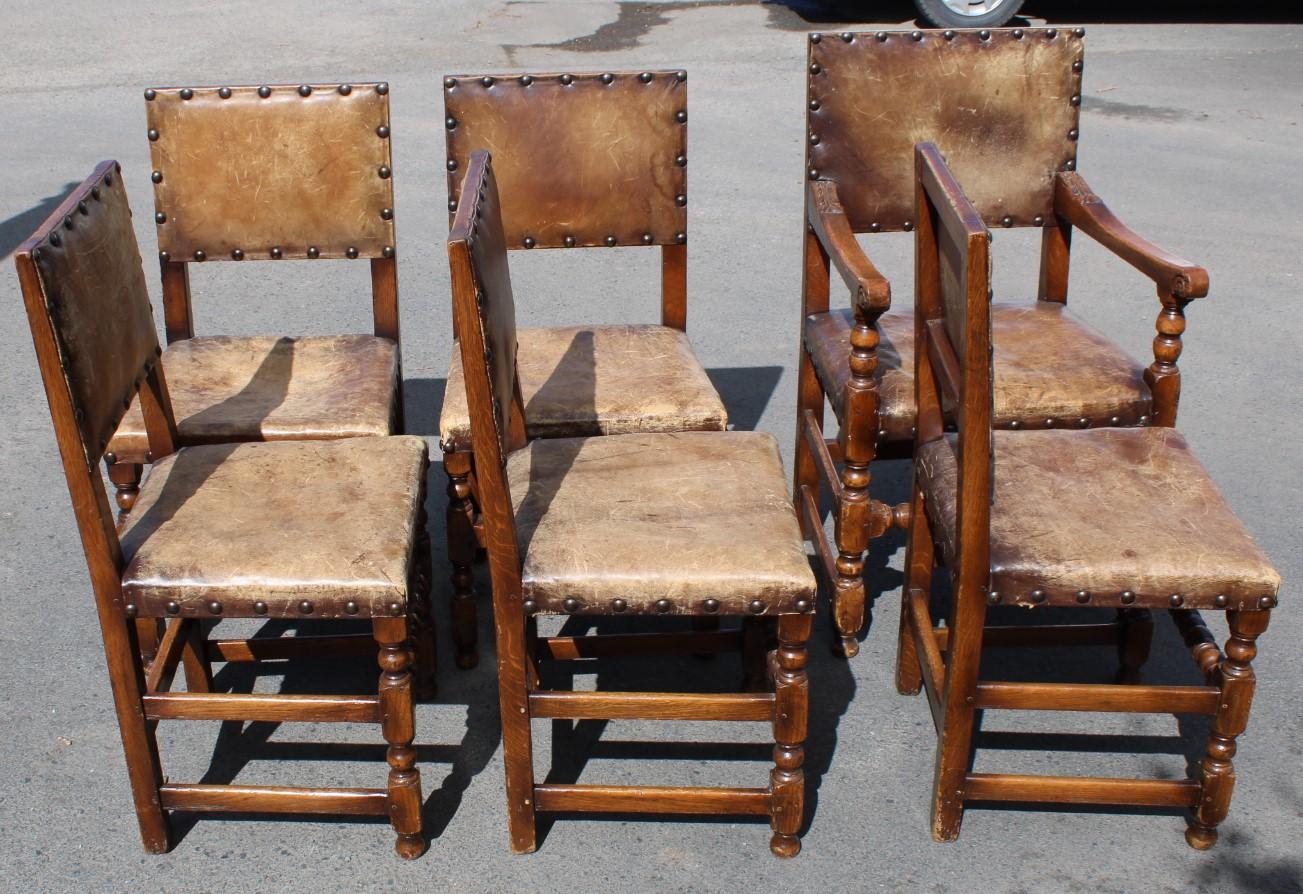 Set of 6 Oak Leather Dining Chairs