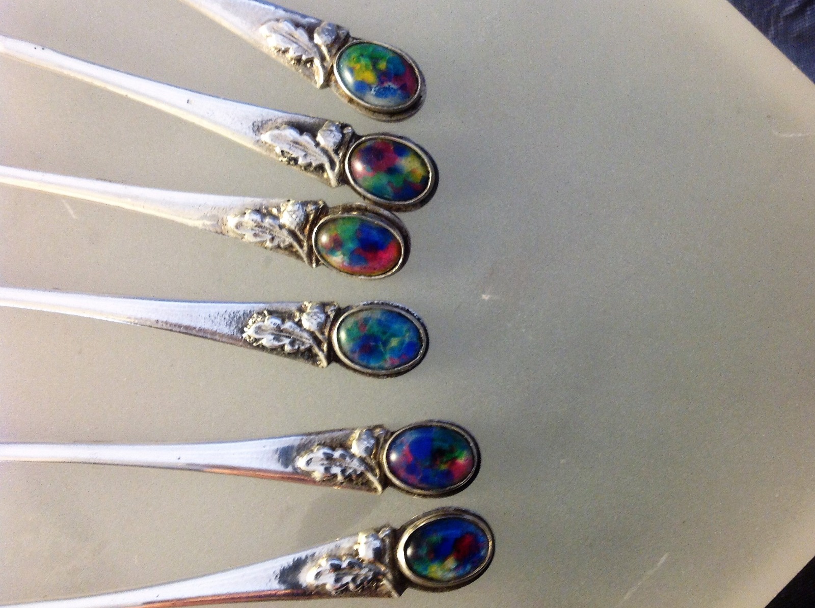 Set of 6 Opal Glass Set Coffee Spoons Bernard Instone