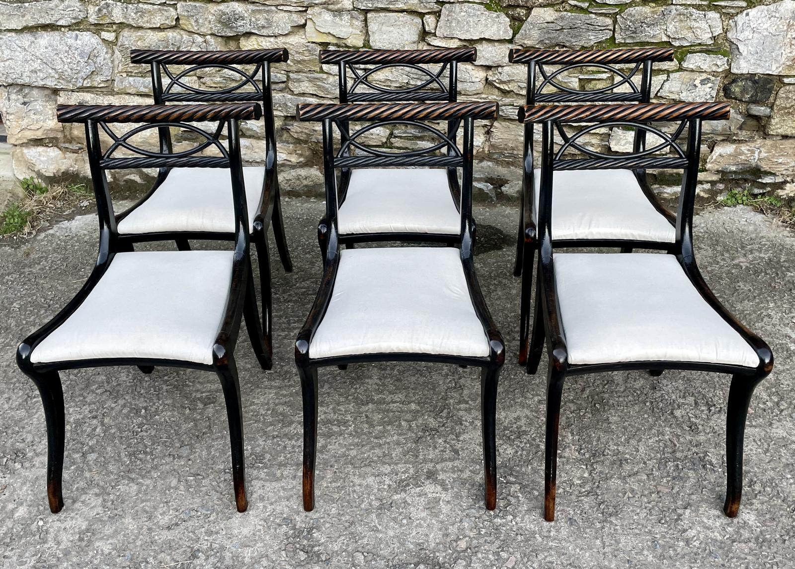 ​Set of 6 Regency Ebonised Rope Twist Trafalgar Chairs​