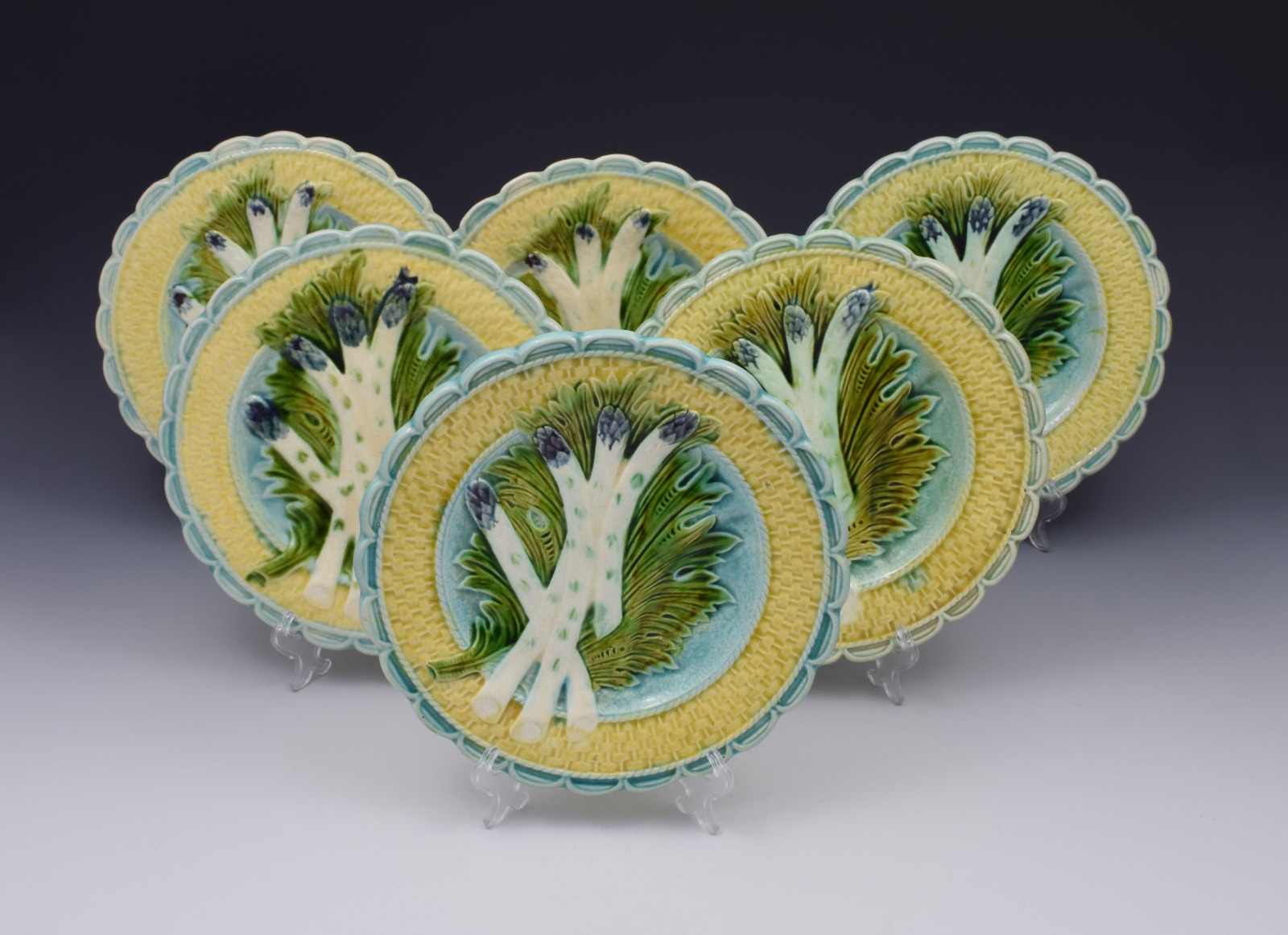 Set of 6 Salins-Les-Bains French Majolica Asparagus Plates
