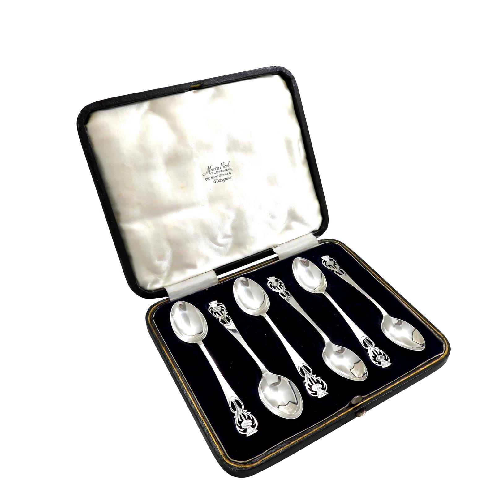 Set of 6 Scottish Sterling Silver 'Thistle' Teaspoons - Glasgow 1937
